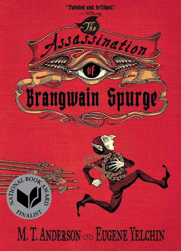 “The Assassination of Brangwain Spurge.” By M. T. Anderson and Eugene Yelchin. Illus. by Eugene Yelchin. 2018. Candlewick. Grades 5–8.